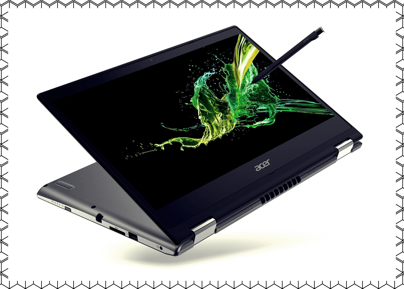 Acer Spin 3은 자체 스타일러스를 가지고 있으며, NVIDIA GeForce MX230 GPU가 롤링하며, Acer가 인용한 것을 "최대 12시간의 배터리 수명"으로 가지고 있다. 또한 그것은 회전한다. 그것의 디스플레이 패널은 접혀져 있고 등에는 거의 360도나 되는 태블릿이 되어 온갖 종류의 사용 사례들을 위해 스타일러스를 고소하고 있다. 마치 이 글의 맨 앞에 보이는 그래피티 프리뷰를 그리는 것처럼 말이다.
